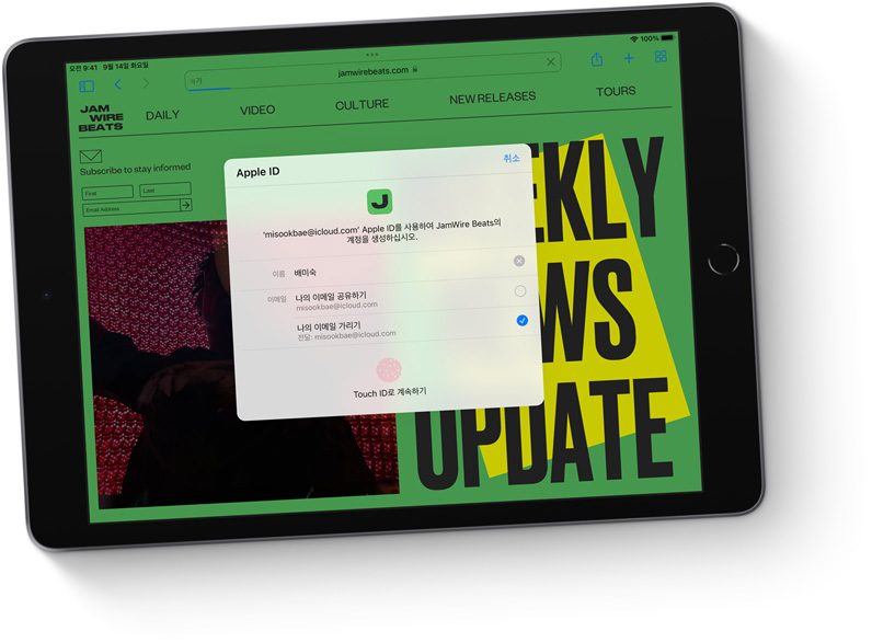 다른 모든 Apple 제품과 마찬가지로 iPad 역시 당신의 개인 정보 보호 및 보안을 염두에 두고 설계되었습니다. 결코 쉽지만은 않은 작업이죠. 하지만 그런 것만이 진정한 혁신이라 우리는 믿습니다.